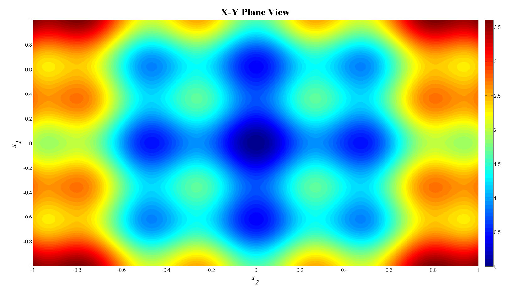 $$f(X) = x^2_1+2x^2_2-0.3\cos\left(3 \pi x_1\right)-0.4\cos\left(4 \pi x_2\right)+0.7$$