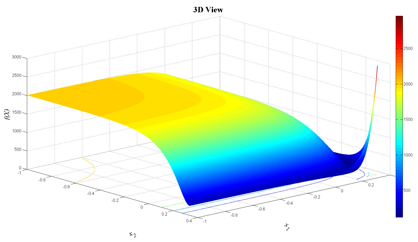 zlabel('f(X)','FontName','Times','FontSize',20,'FontAngle','italic');