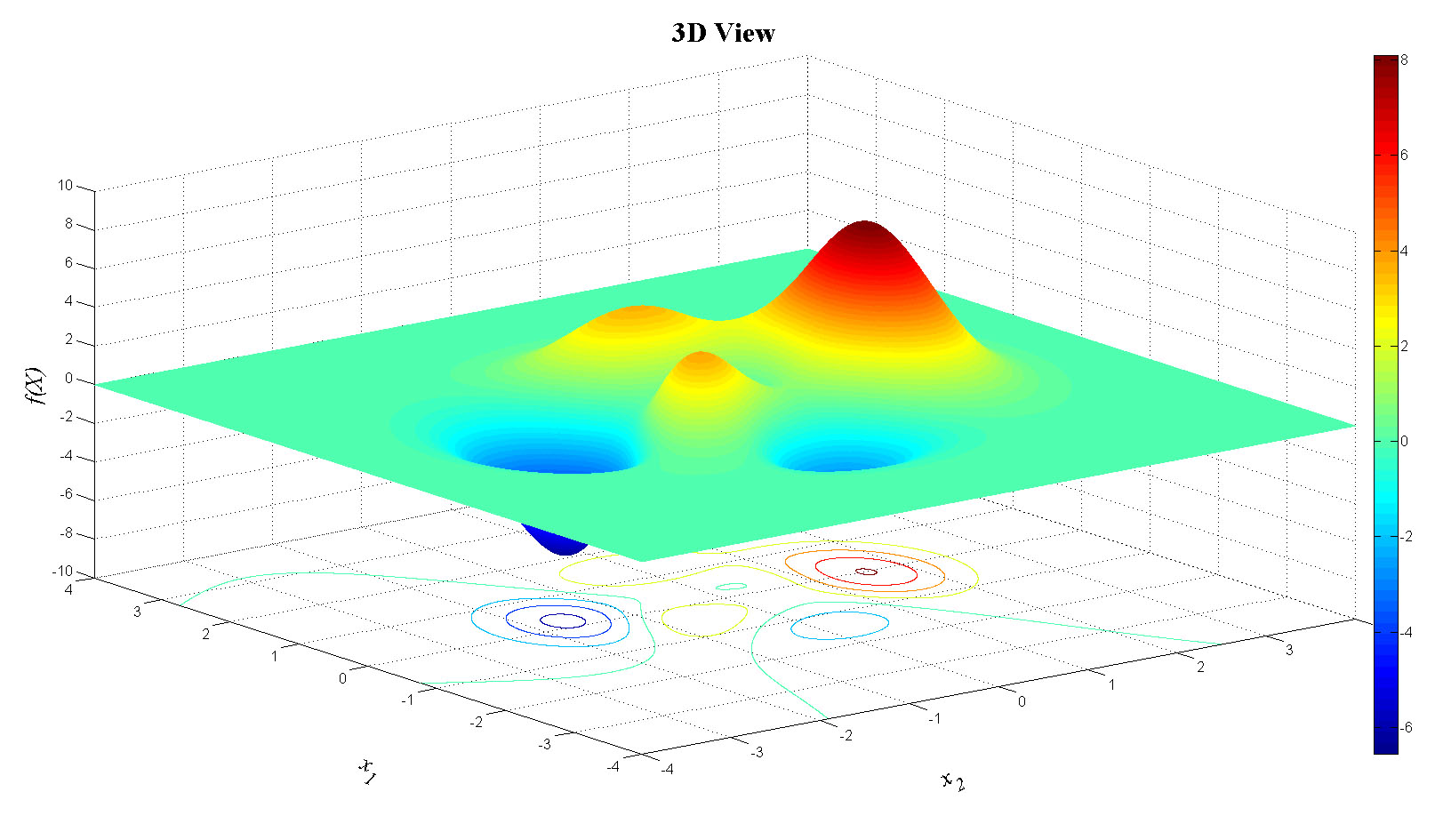 zlabel('f(X)','FontName','Times','FontSize',20,'FontAngle','italic');