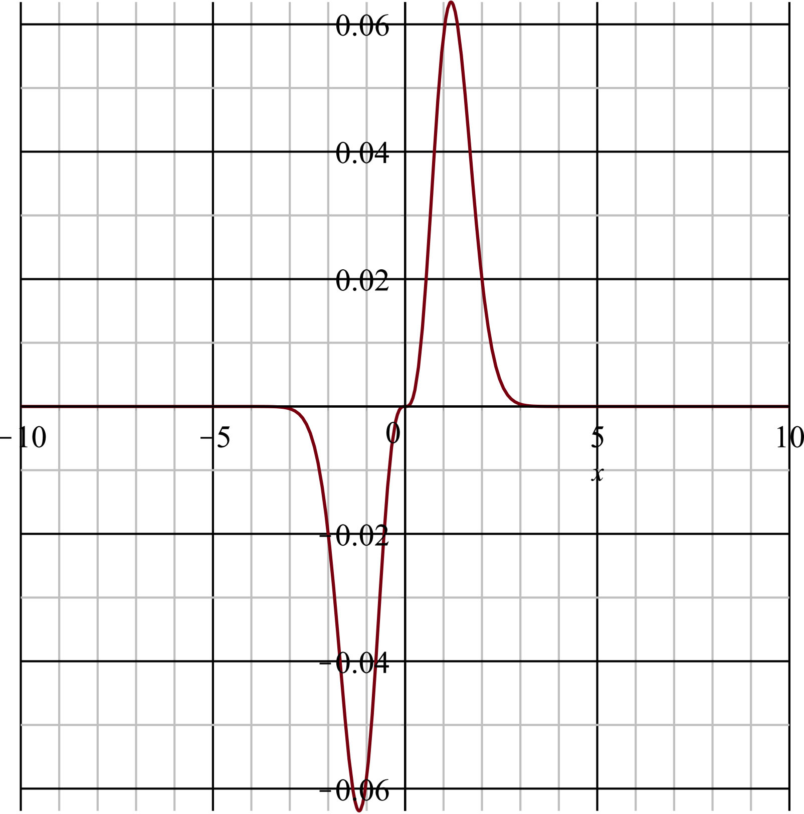 $$f(x)=\left[x-\sin(x)\right]e^{-x^2}$$