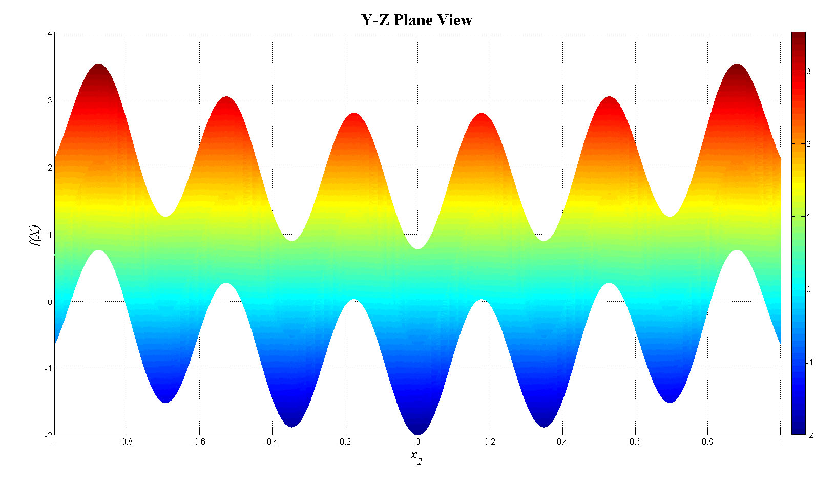mesh(x1,x2,f_tot);view(0,0);colorbar;set(gca,'FontSize',12);