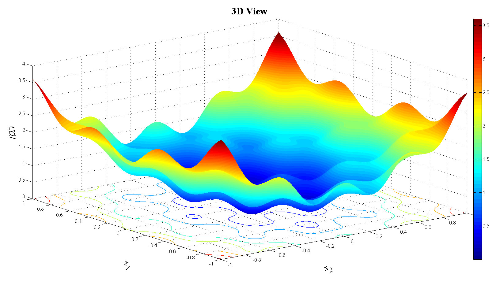zlabel('f(X)','FontName','Times','FontSize',20,'FontAngle','italic');