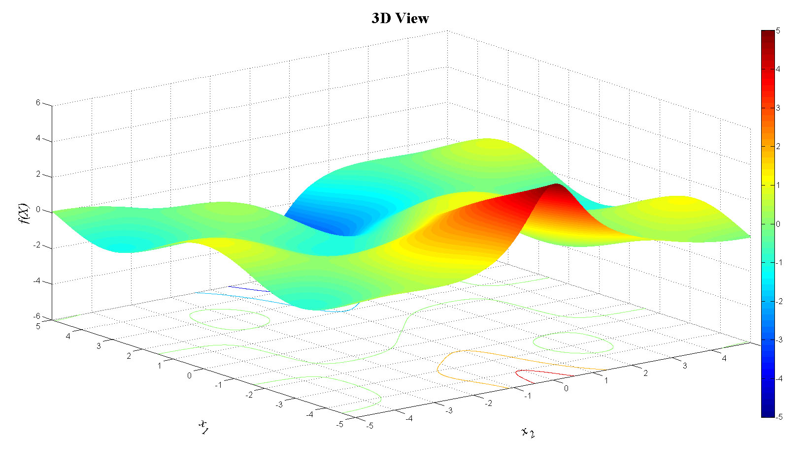 zlabel('f(X)','FontName','Times','FontSize',20,'FontAngle','italic');