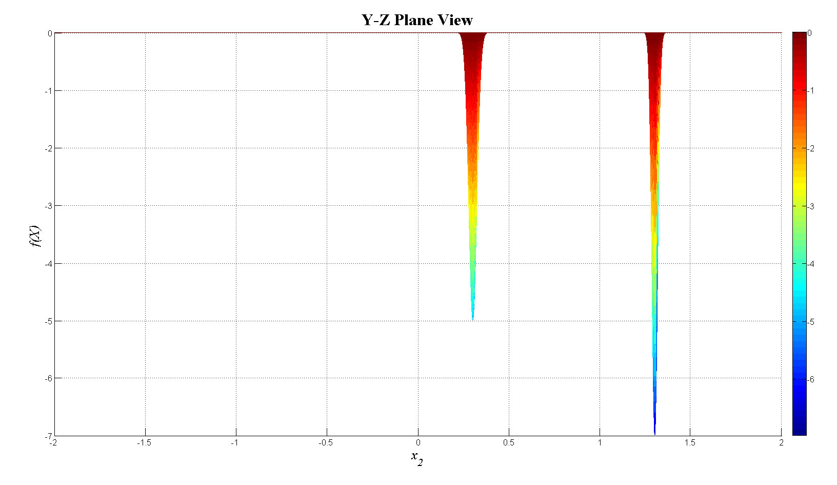 f(i)=-5*exp(-1000*(x1(j)-0.5).^2-1000*(x2(i)-0.3)^2)-7*exp(-2000*(x1(j)-0.8).^2-2000*(x2(i)-1.3)^2);