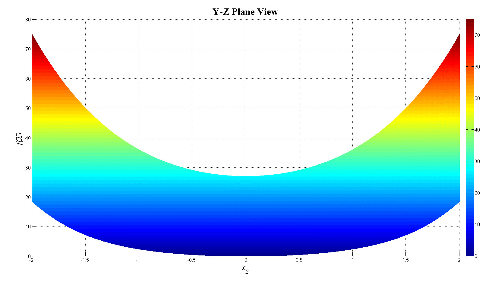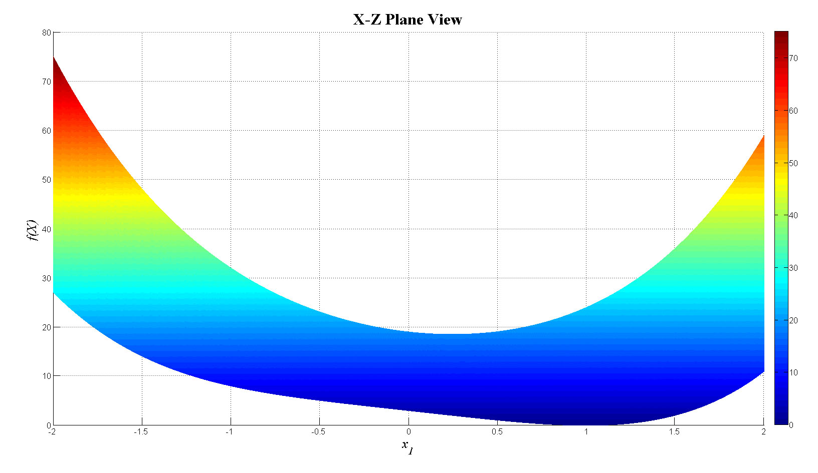 mesh(x1,x2,f_tot);view(0,0);colorbar;set(gca,'FontSize',12);