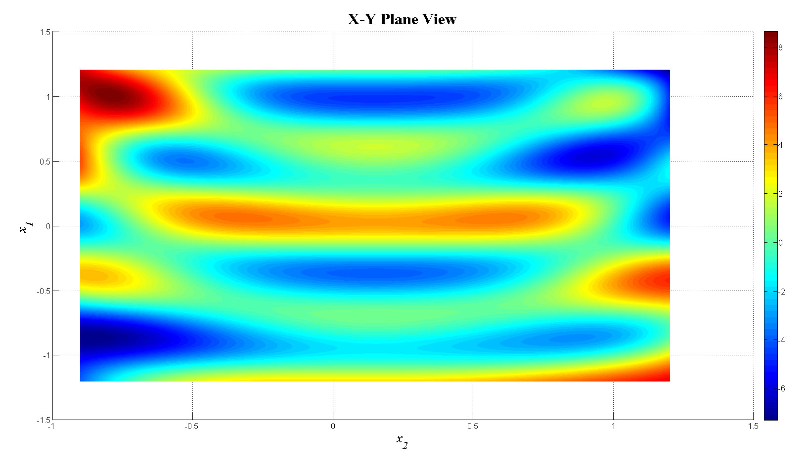 mesh(x1,x2,f_tot);view(90,0);colorbar;set(gca,'FontSize',12);