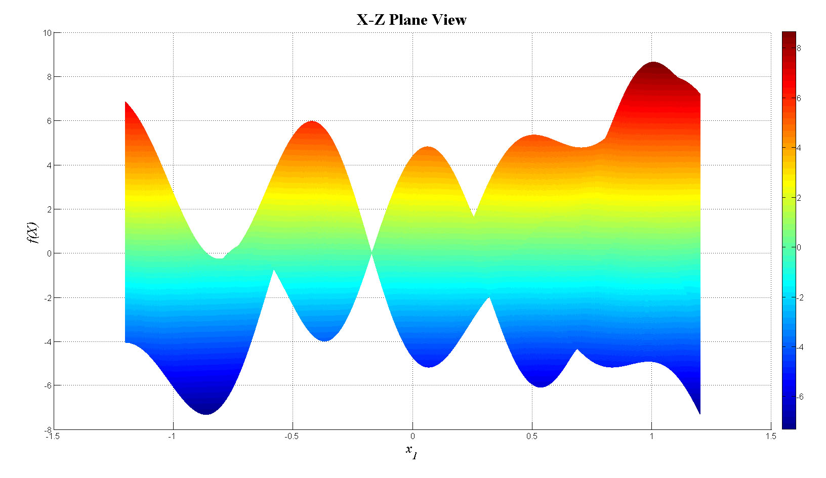 zlabel('f(X)','FontName','Times','FontSize',20,'FontAngle','italic');