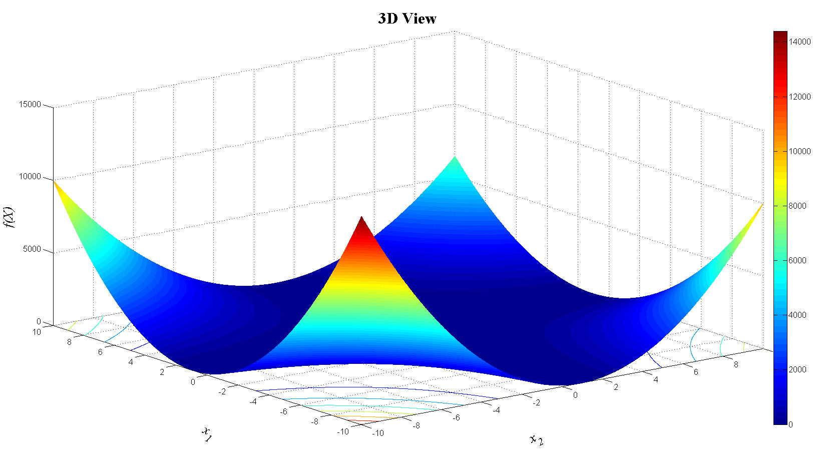 zlabel('f(X)','FontName','Times','FontSize',20,'FontAngle','italic');