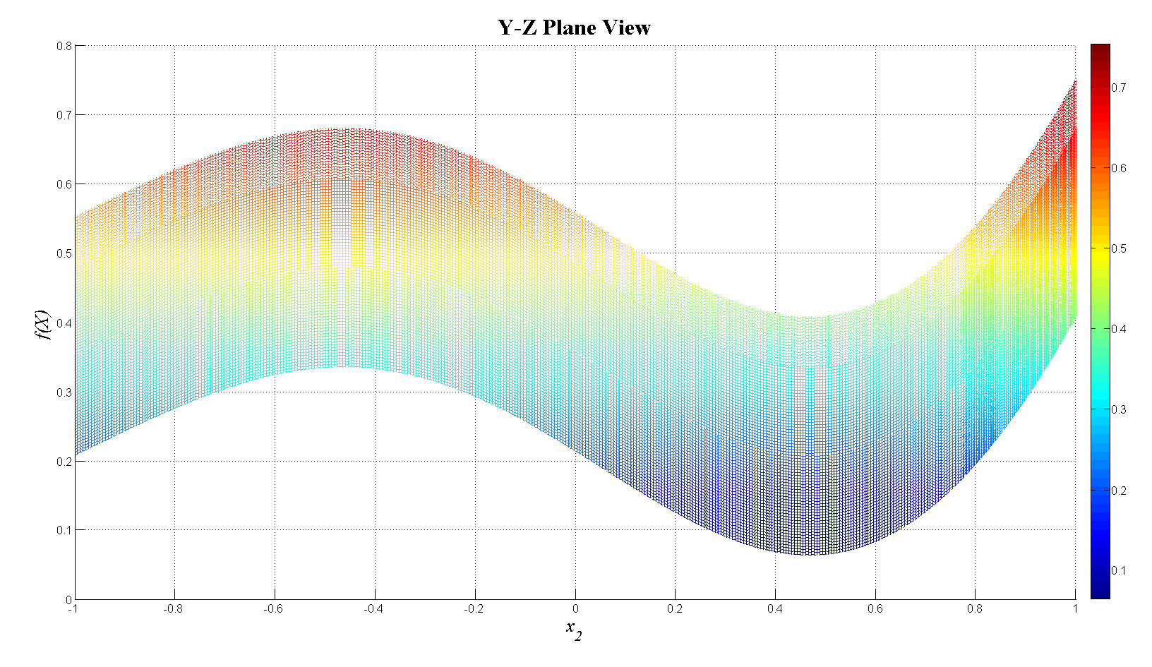 mesh(x1,x2,f_tot);view(0,0);colorbar;set(gca,'FontSize',12);