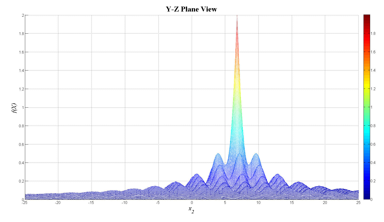 mesh(x1,x2,f_tot);view(0,0);colorbar;set(gca,'FontSize',12);