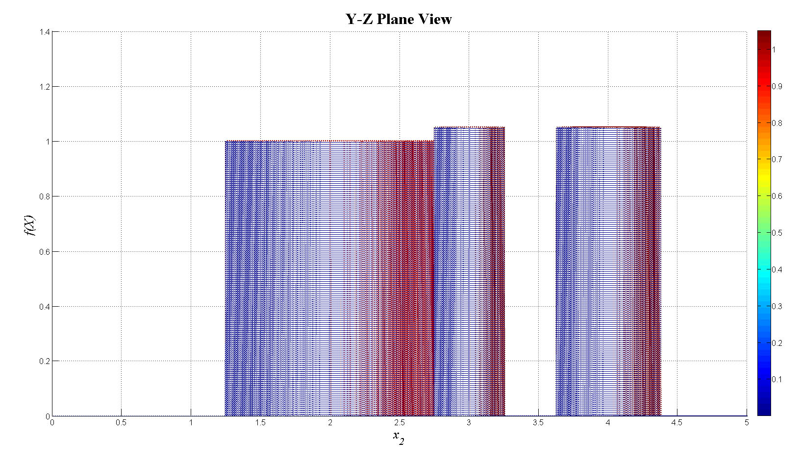 mesh(x1,x2,f_tot);view(0,0);colorbar;set(gca,'FontSize',12);