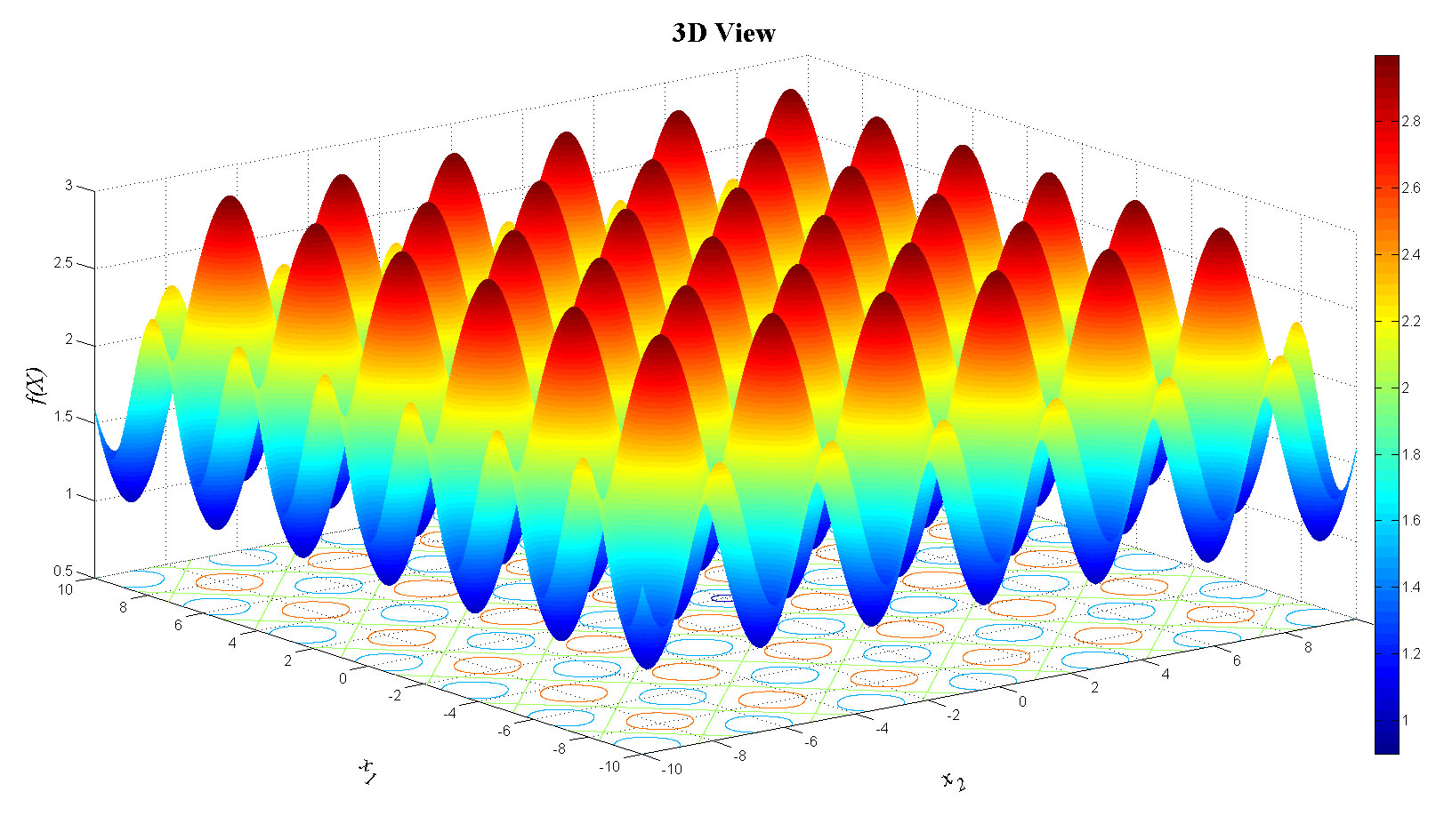 f(i)=1+(sin(x1(j))).^2+(sin(x2(i))).^2-0.1*exp(-x1(j).^2-x2(i).^2);
