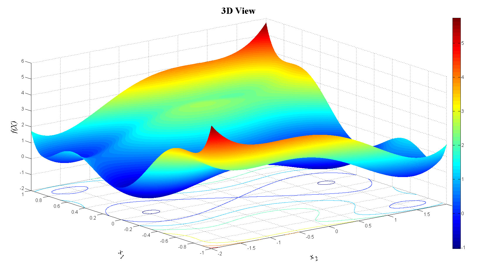 zlabel('f(X)','FontName','Times','FontSize',20,'FontAngle','italic');