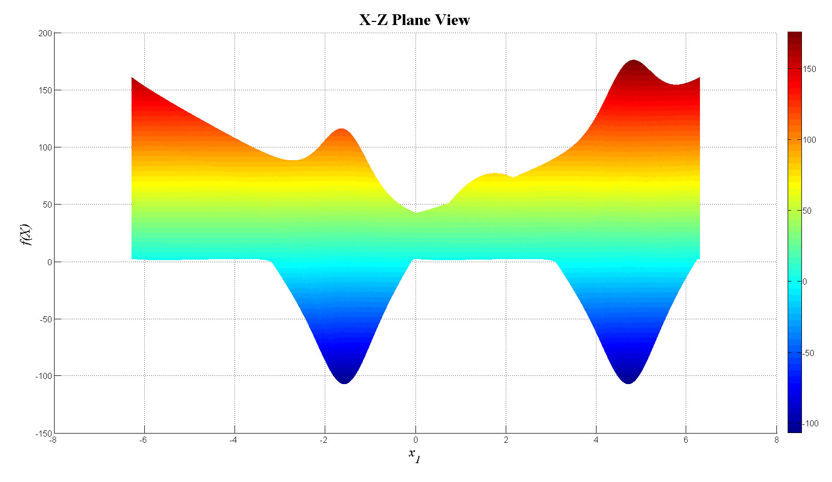 \(\bullet\) It has two global minimum: \(f_{min}(X^*)=-106.7645367198034\)