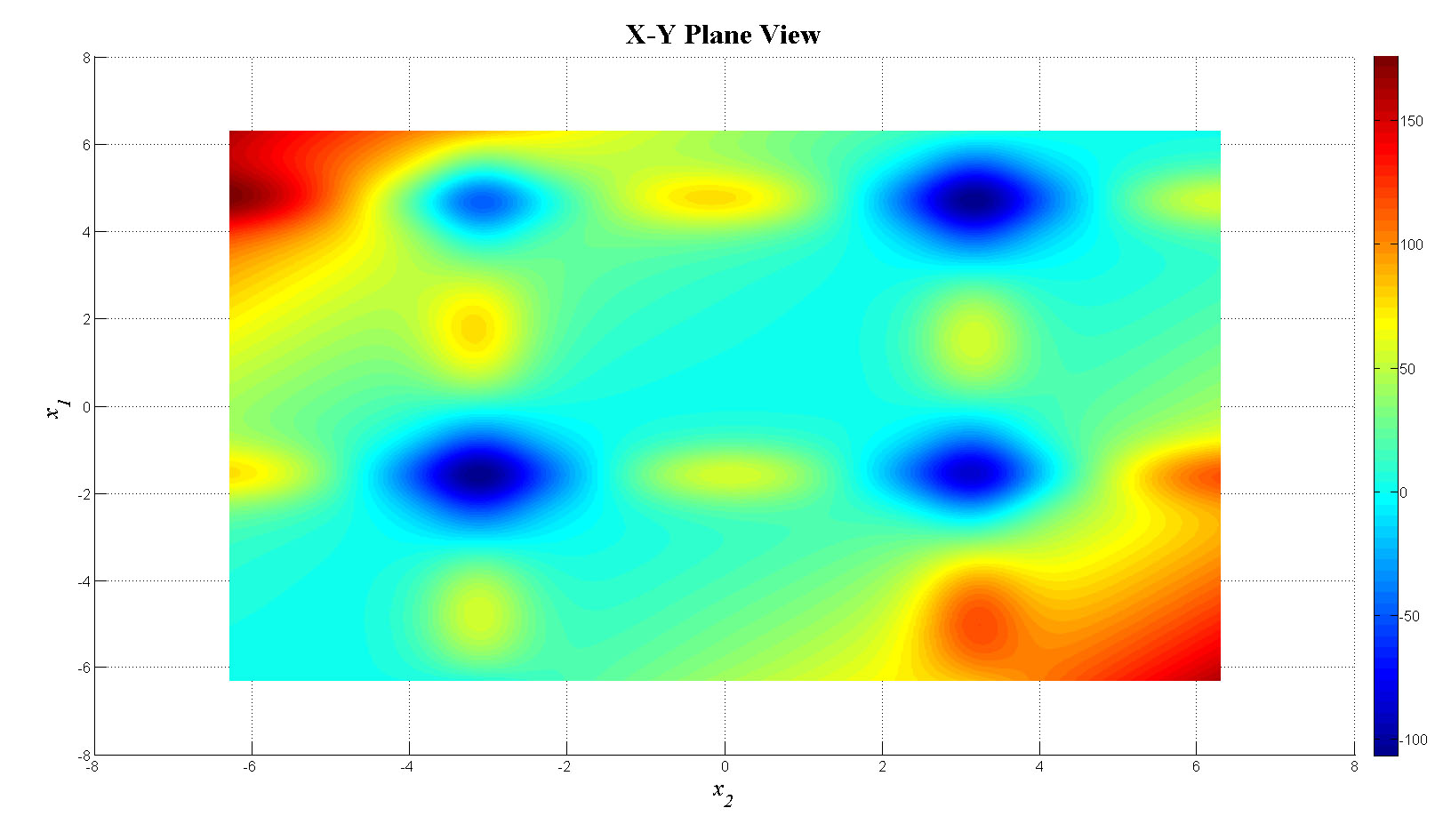 mesh(x1,x2,f_tot);view(90,0);colorbar;set(gca,'FontSize',12);