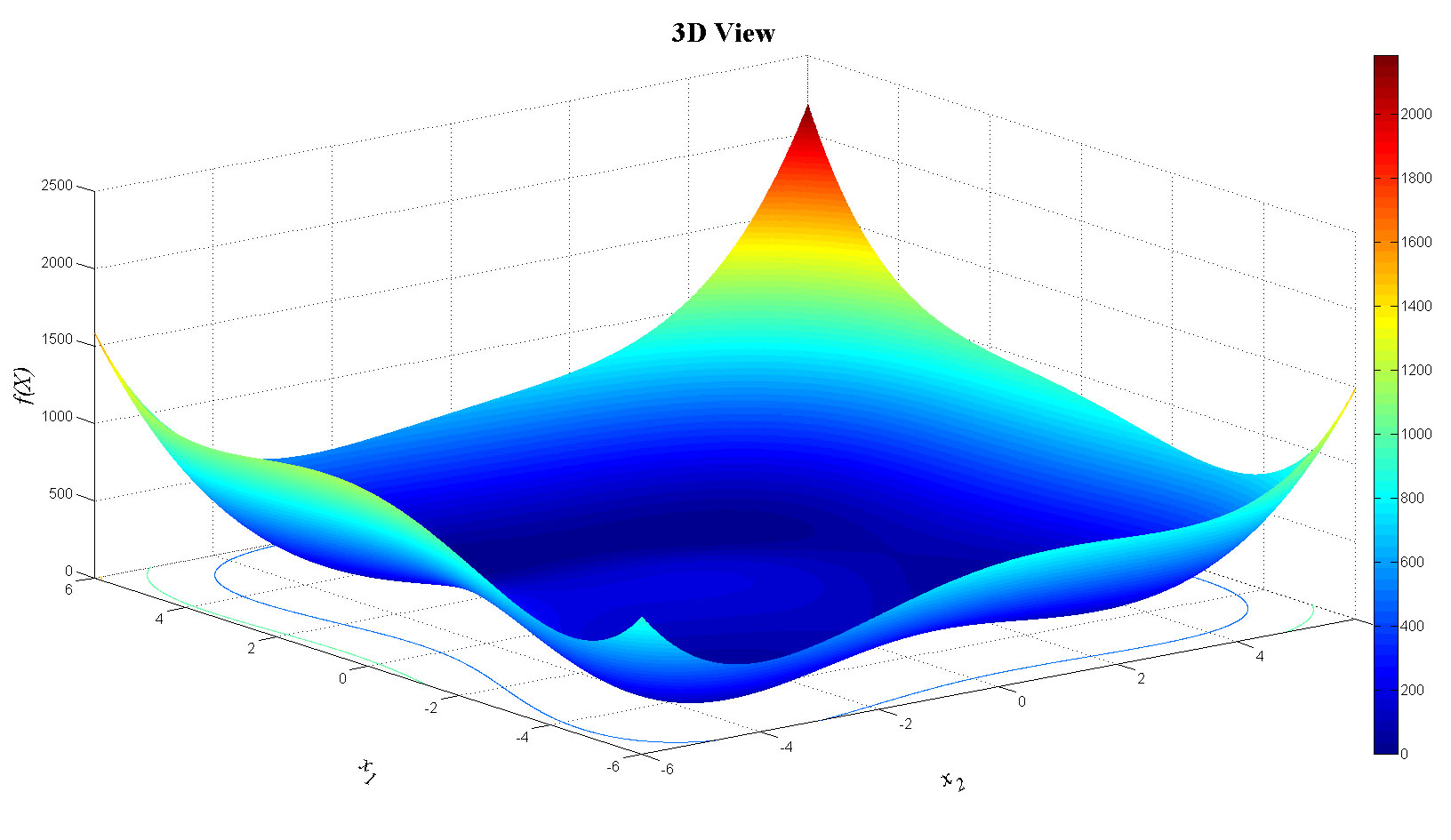 zlabel('f(X)','FontName','Times','FontSize',20,'FontAngle','italic');