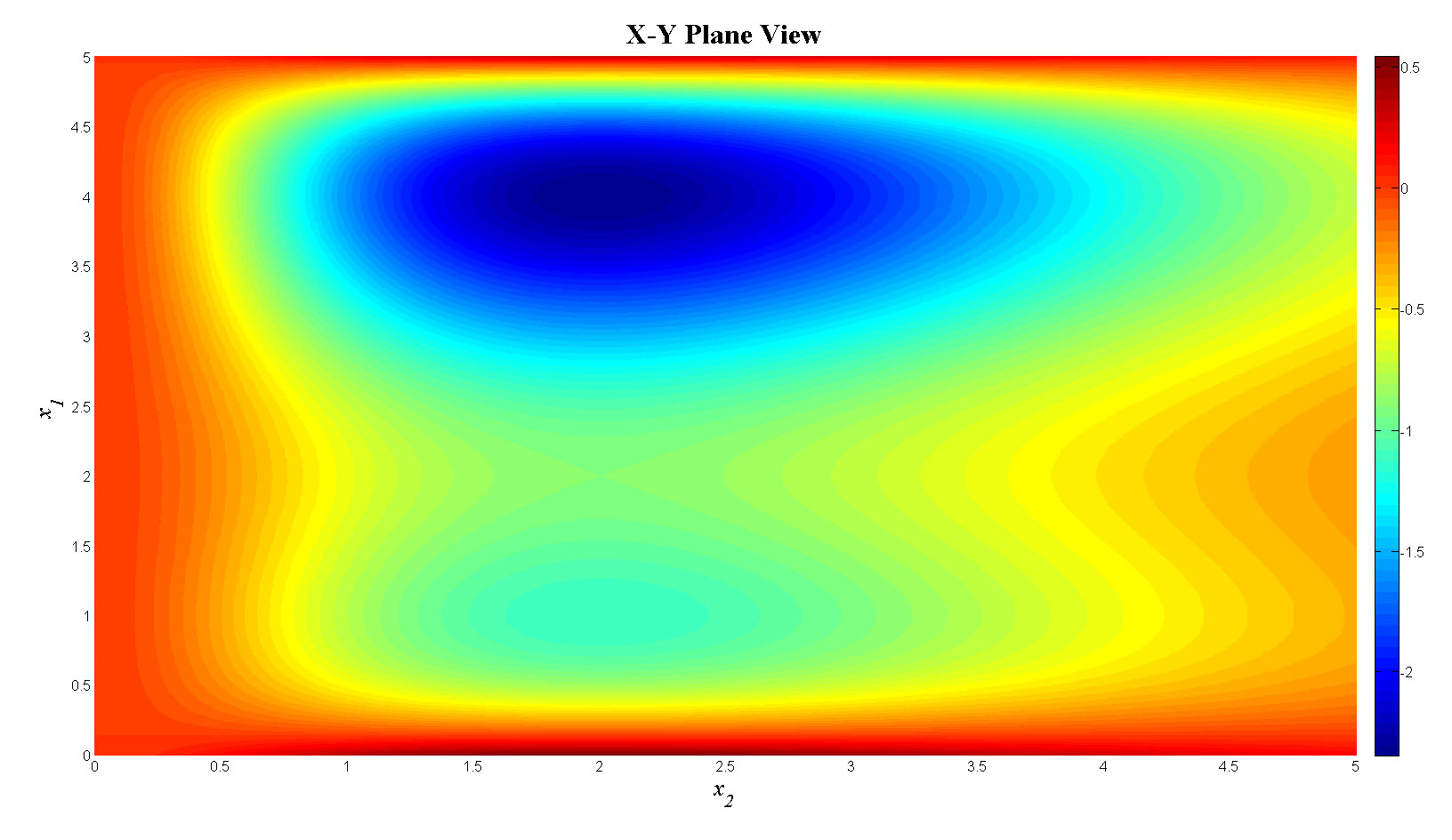 mesh(x1,x2,f_tot);view(90,0);colorbar;set(gca,'FontSize',12);