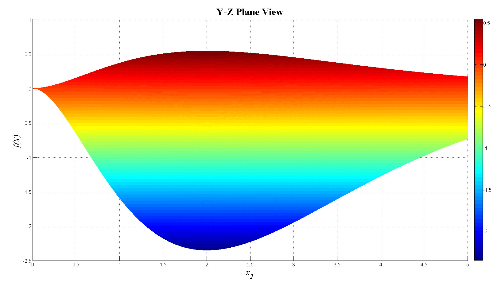 mesh(x1,x2,f_tot);view(0,0);colorbar;set(gca,'FontSize',12);