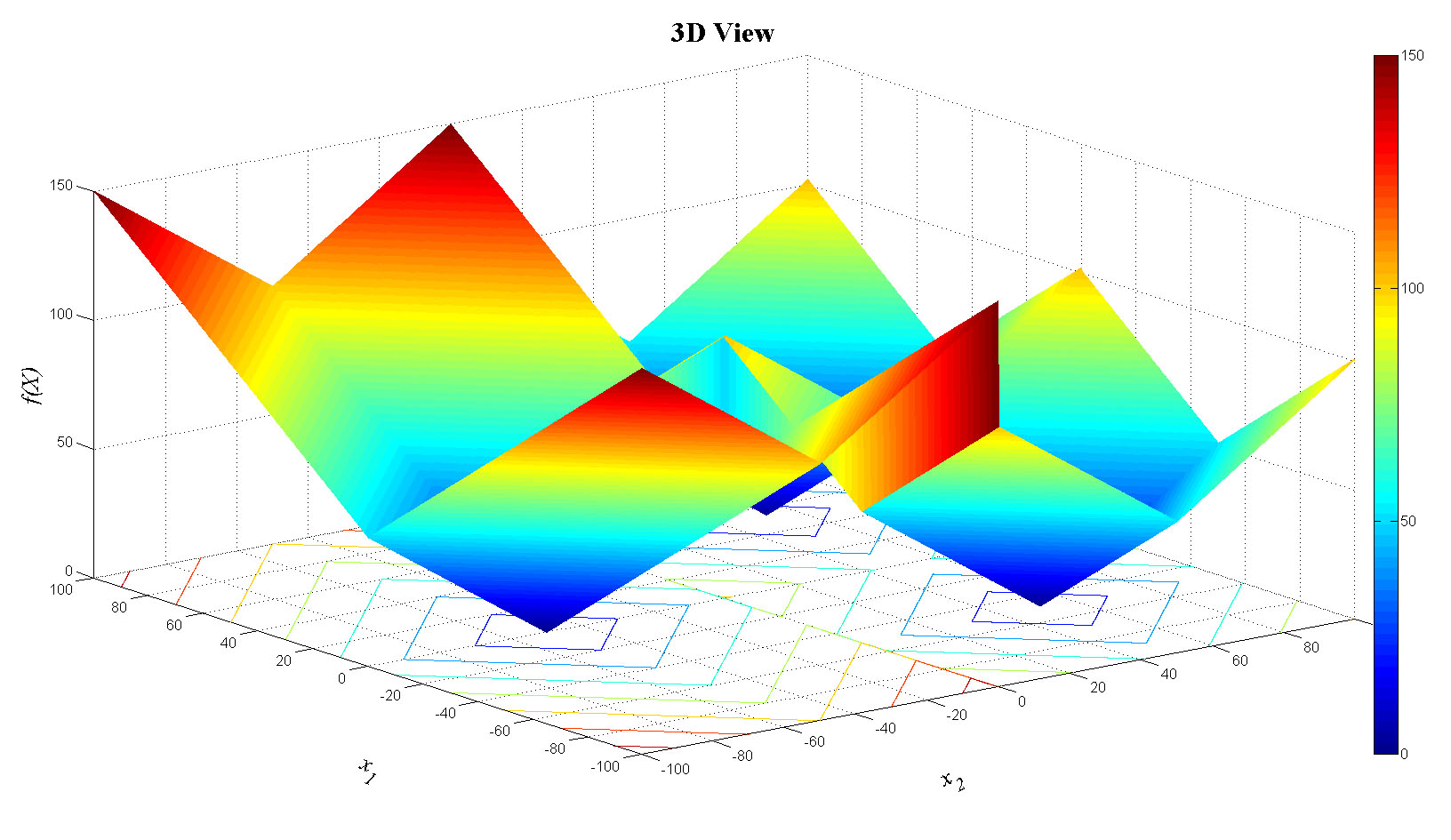 $$f(X)=p\left(x_2\right)\left[1+p\left(x_1\right)\right]+\left|\left\{x_1+50p\left(x_2\right)\left[1-2p\left(x_1\right)\right]\right\}\right|+\left|\left\{x_2+50\left[1-2p\left(x_2\right)\right]\right\}\right|$$
