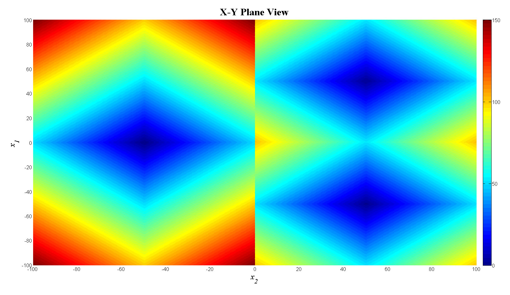 \(\bullet\) \(-100\leq x_i\leq 100\), \(i=1,2\)