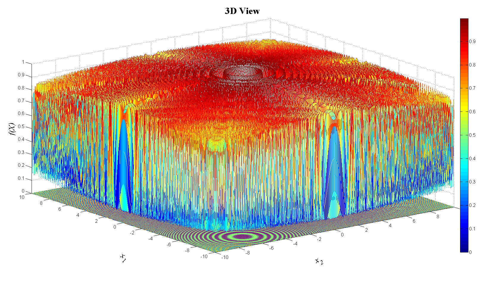 zlabel('f(X)','FontName','Times','FontSize',20,'FontAngle','italic');