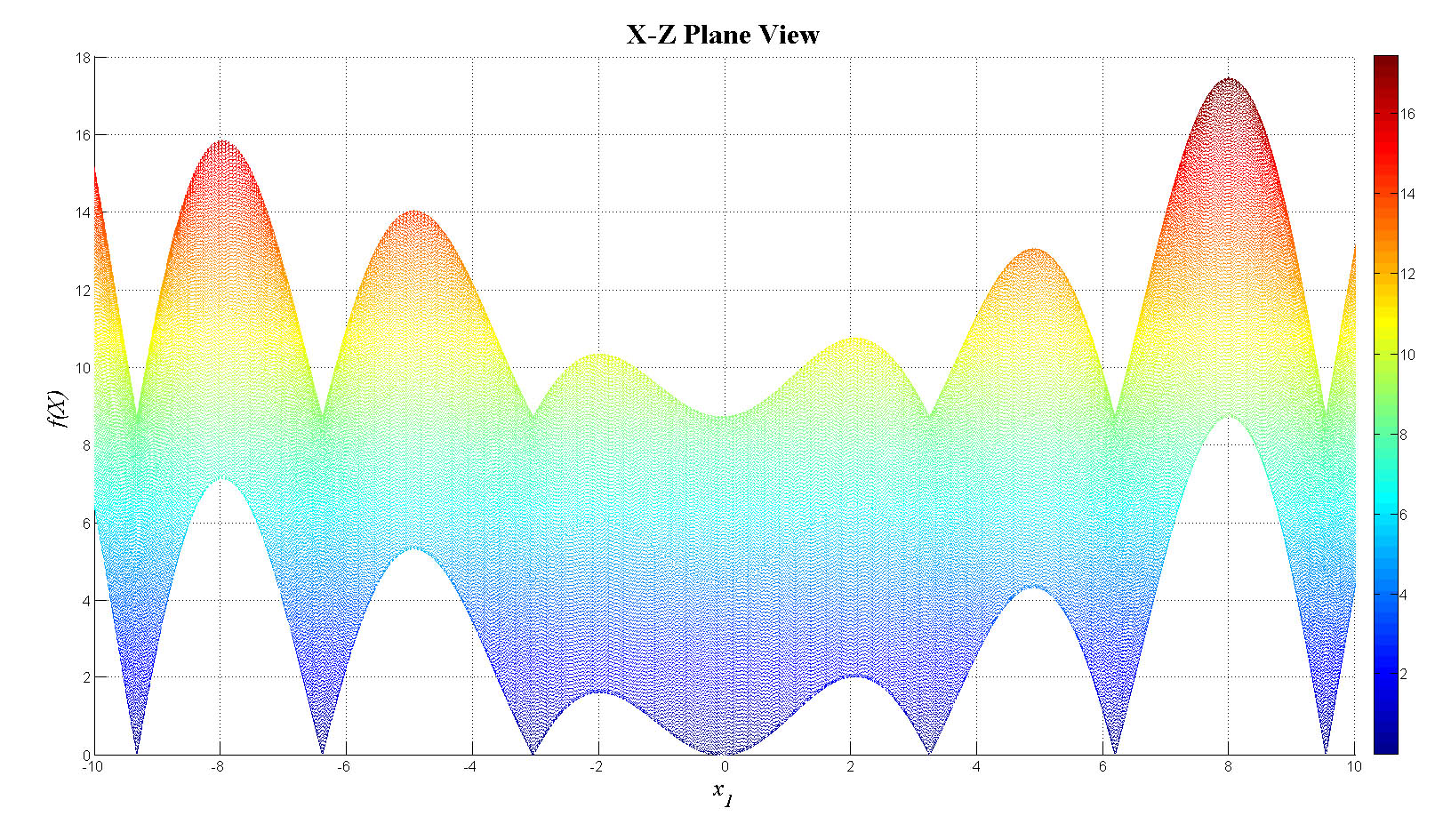 $$f(X)=\sum_{i=1}^{n}\left|x_i\sin\left(x_i\right)+0.1x_i\right|$$