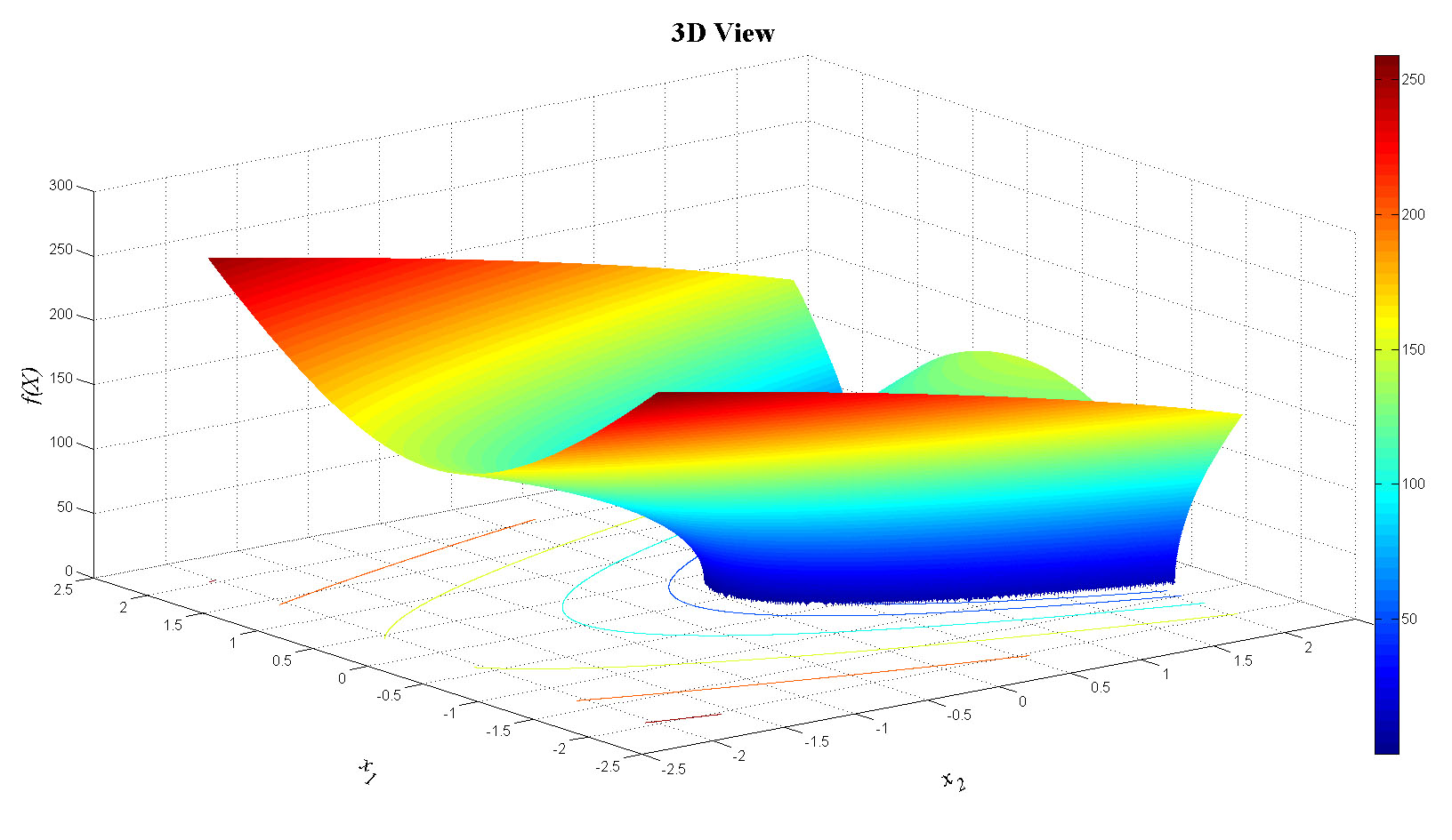 zlabel('f(X)','FontName','Times','FontSize',20,'FontAngle','italic');