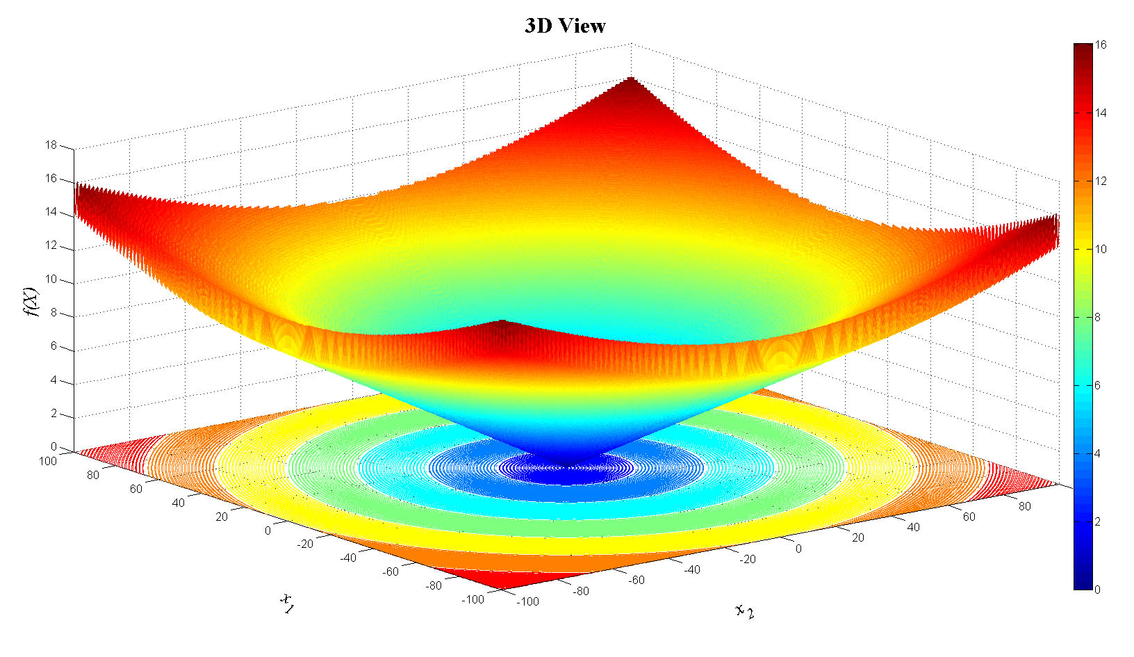 zlabel('f(X)','FontName','Times','FontSize',20,'FontAngle','italic');