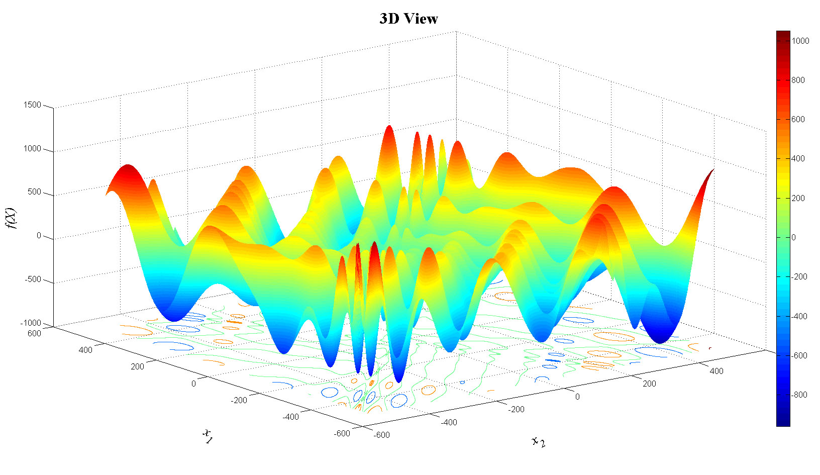 zlabel('f(X)','FontName','Times','FontSize',20,'FontAngle','italic');