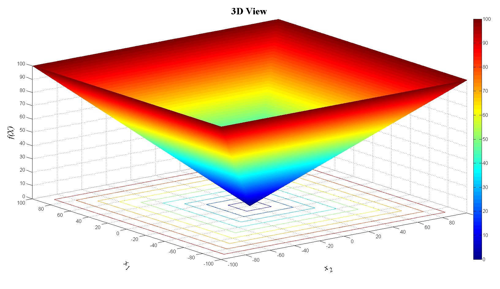 zlabel('f(X)','FontName','Times','FontSize',20,'FontAngle','italic');