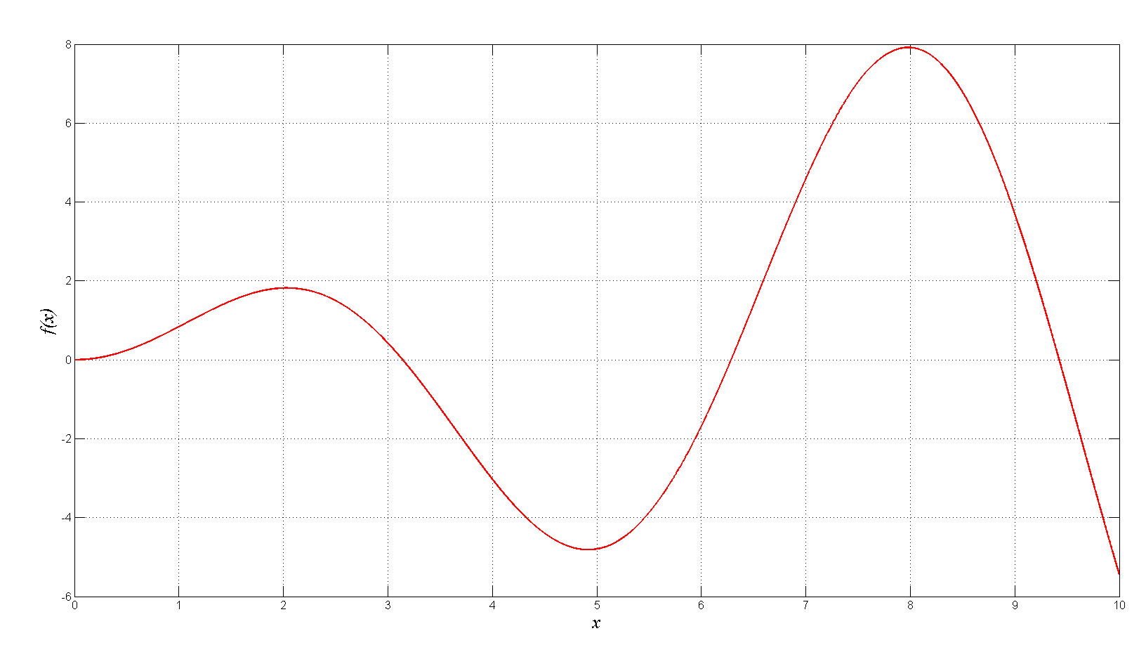\(\bullet\) It has one global maxima: \(f_{max}(x^*)=7.916727371587783\)