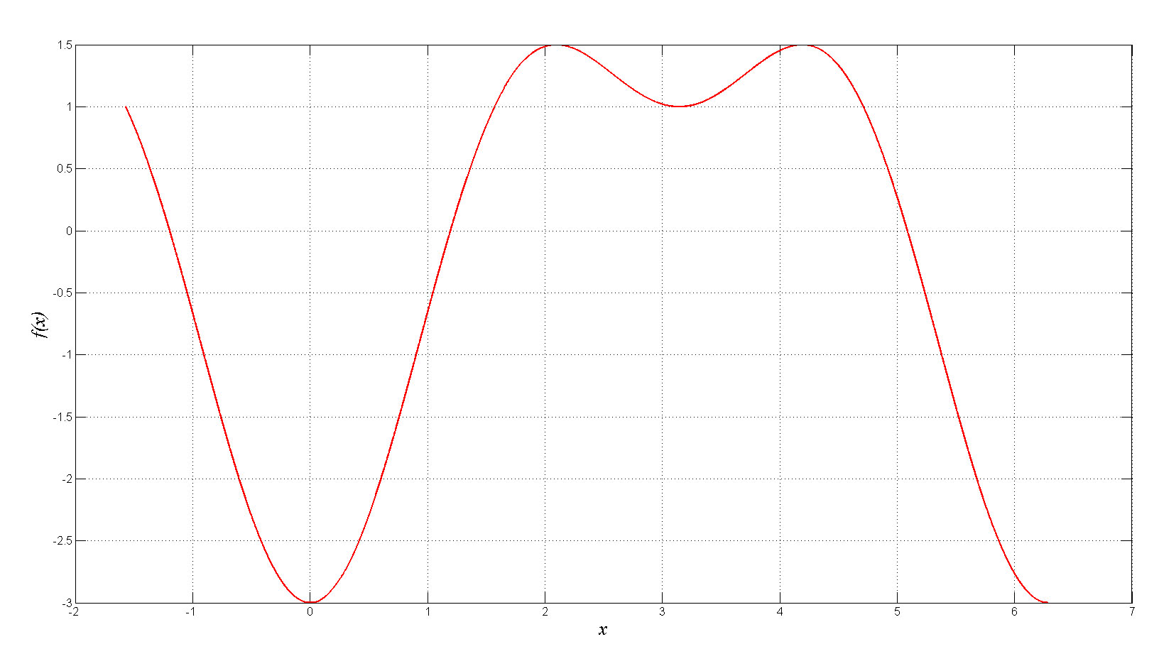 \(\bullet\) It has two global maximum: \(f_{max}(x^*)=1.5\)