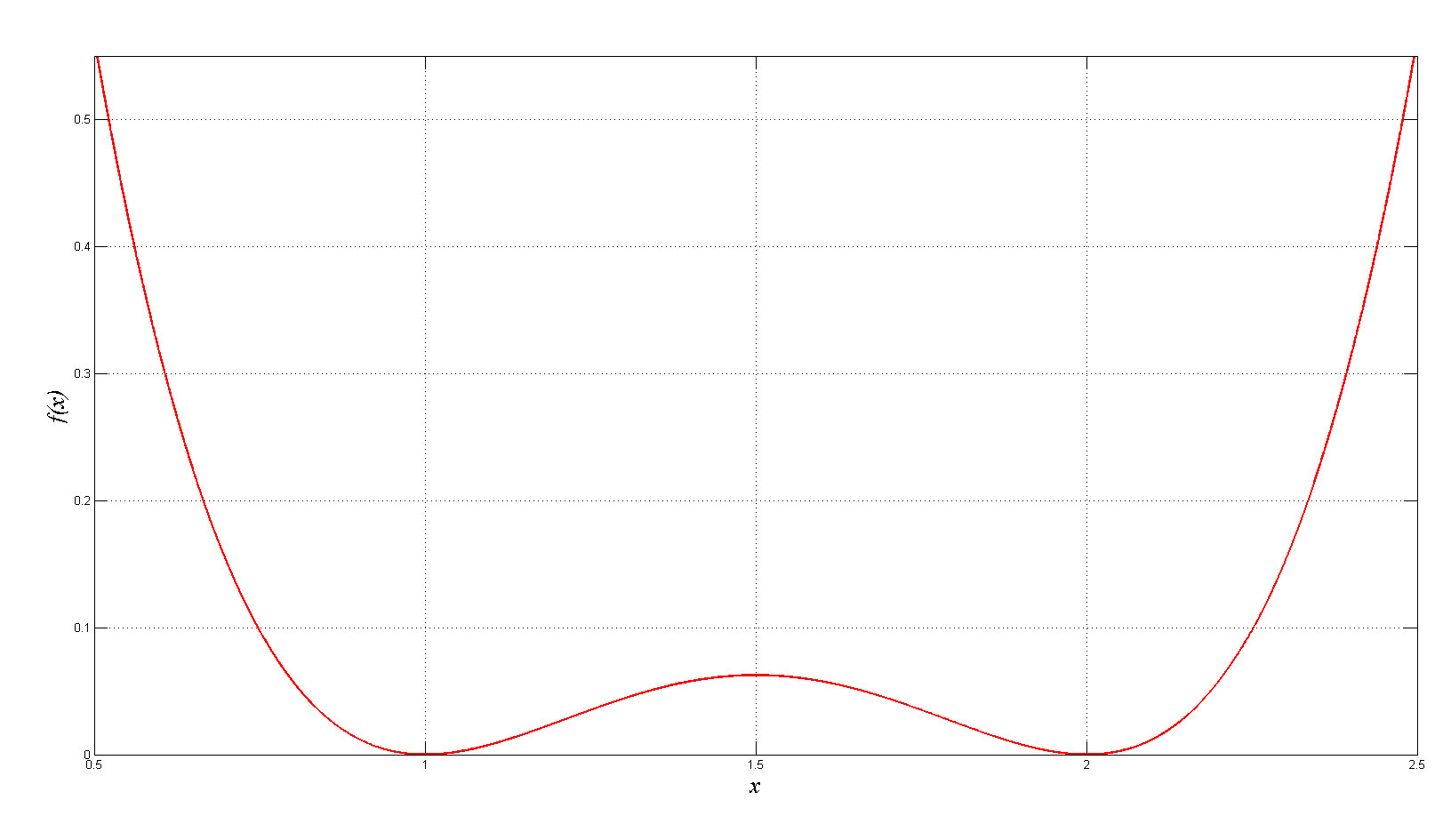 f(i)=(x(i)-1)^2*(x(i)-2)^2;