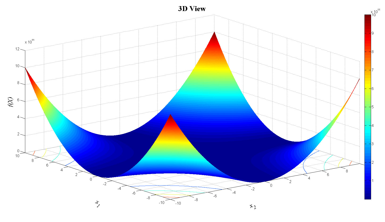 zlabel('f(X)','FontName','Times','FontSize',20,'FontAngle','italic');