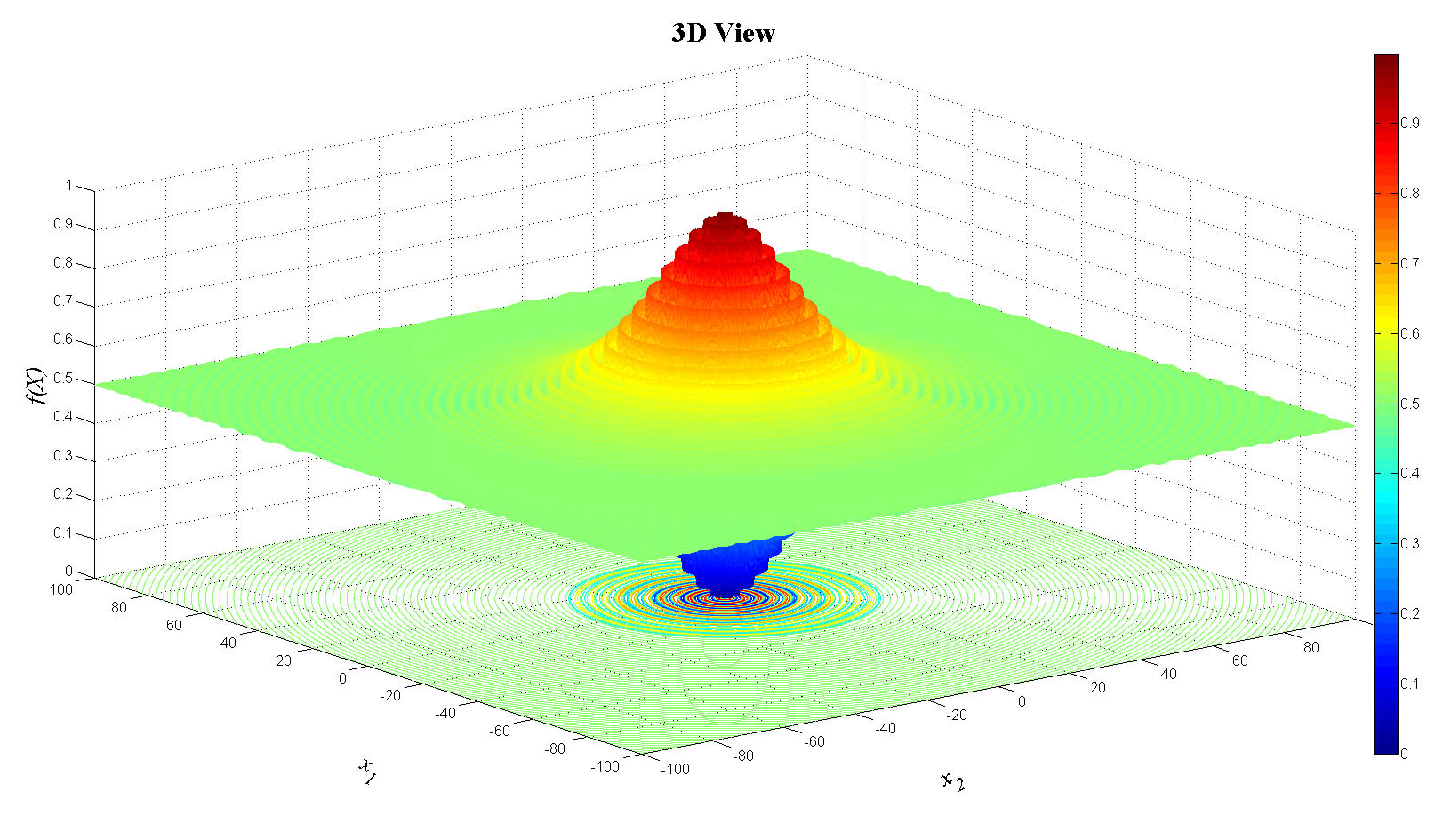 zlabel('f(X)','FontName','Times','FontSize',20,'FontAngle','italic');
