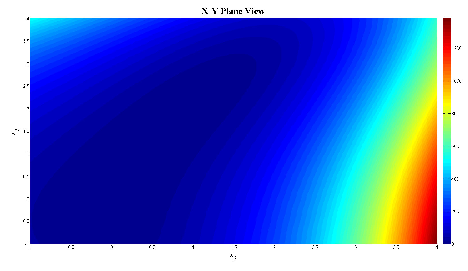 mesh(x1,x2,f_tot);view(90,0);colorbar;set(gca,'FontSize',12);