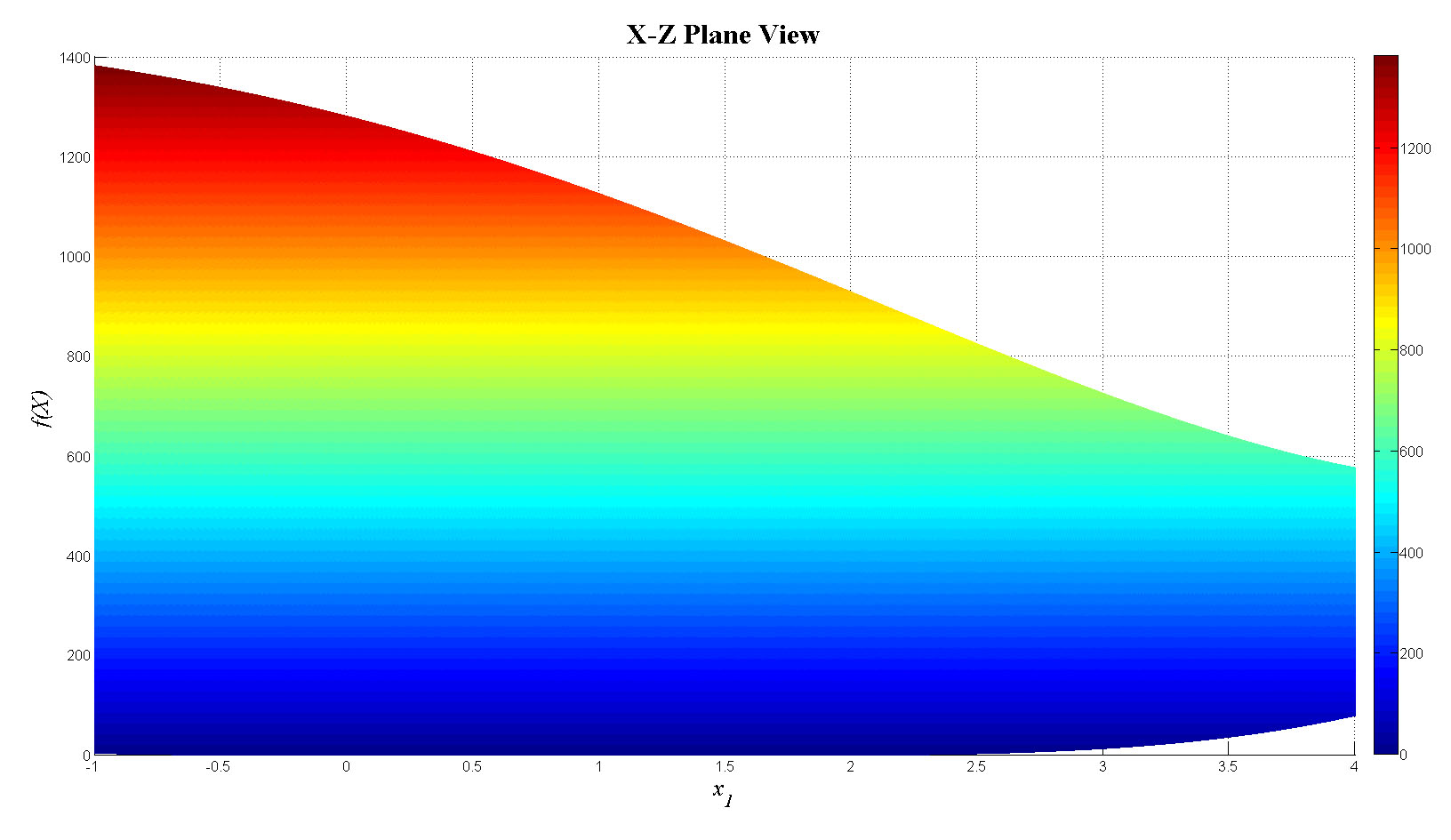 mesh(x1,x2,f_tot);view(0,0);colorbar;set(gca,'FontSize',12);