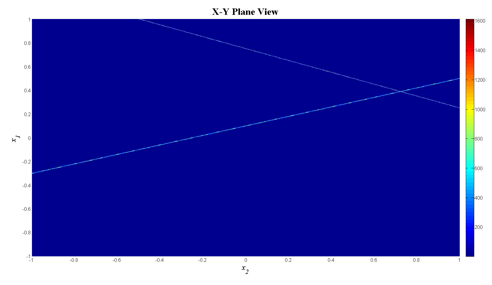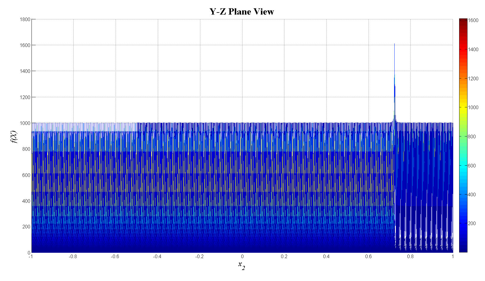 mesh(x1,x2,f_tot);view(0,0);colorbar;set(gca,'FontSize',12);