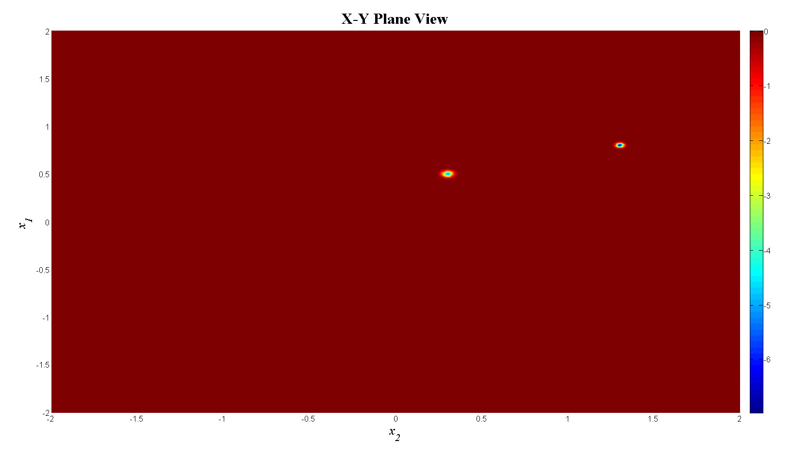 f(i)=-5*exp(-1000*(x1(j)-0.5).^2-1000*(x2(i)-0.3)^2)-7*exp(-2000*(x1(j)-0.8).^2-2000*(x2(i)-1.3)^2);