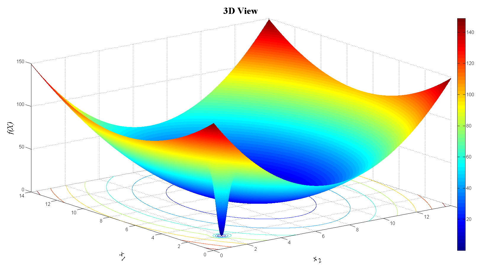 zlabel('f(X)','FontName','Times','FontSize',20,'FontAngle','italic');