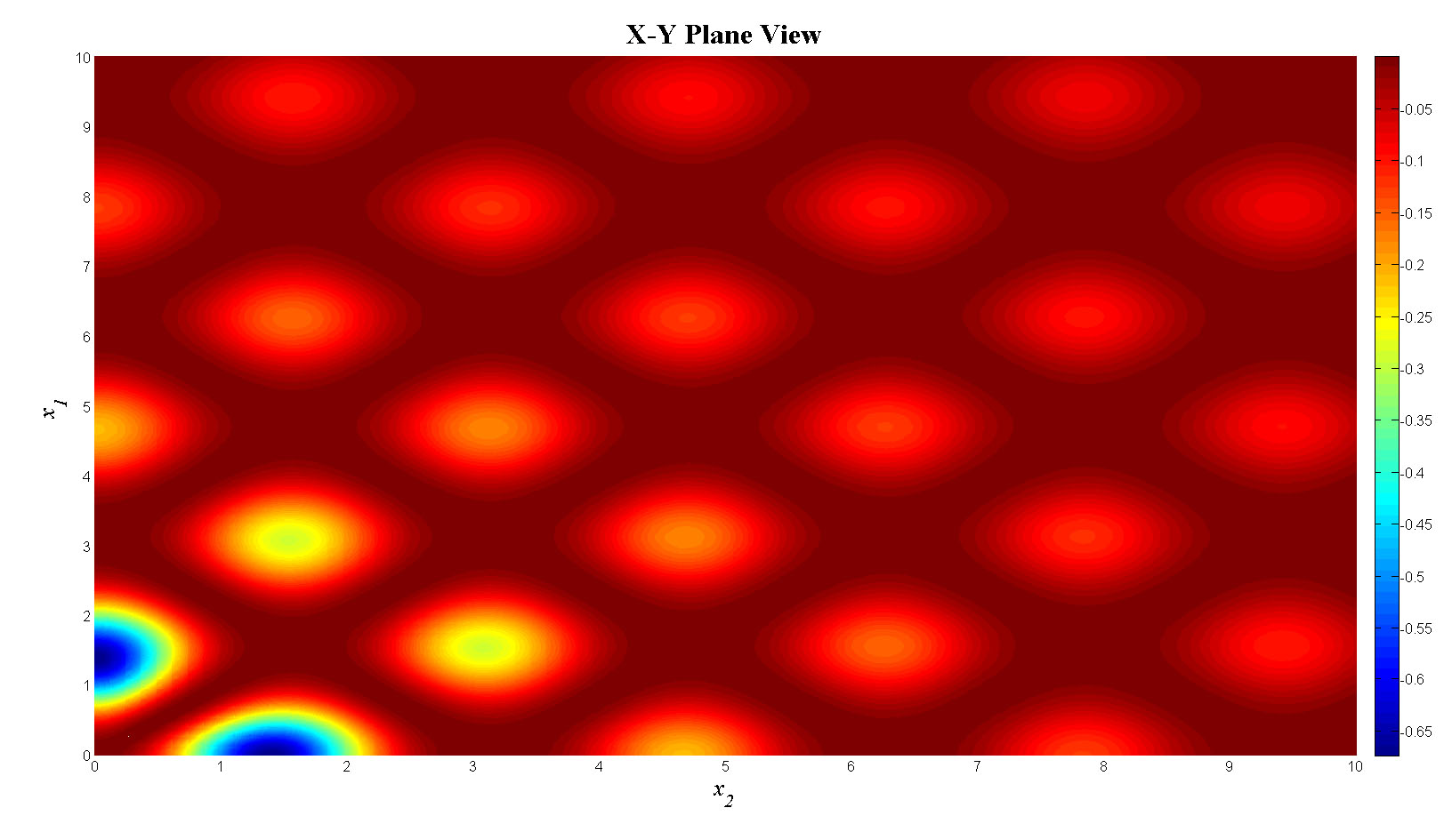 mesh(x1,x2,f_tot);view(90,0);colorbar;set(gca,'FontSize',12);