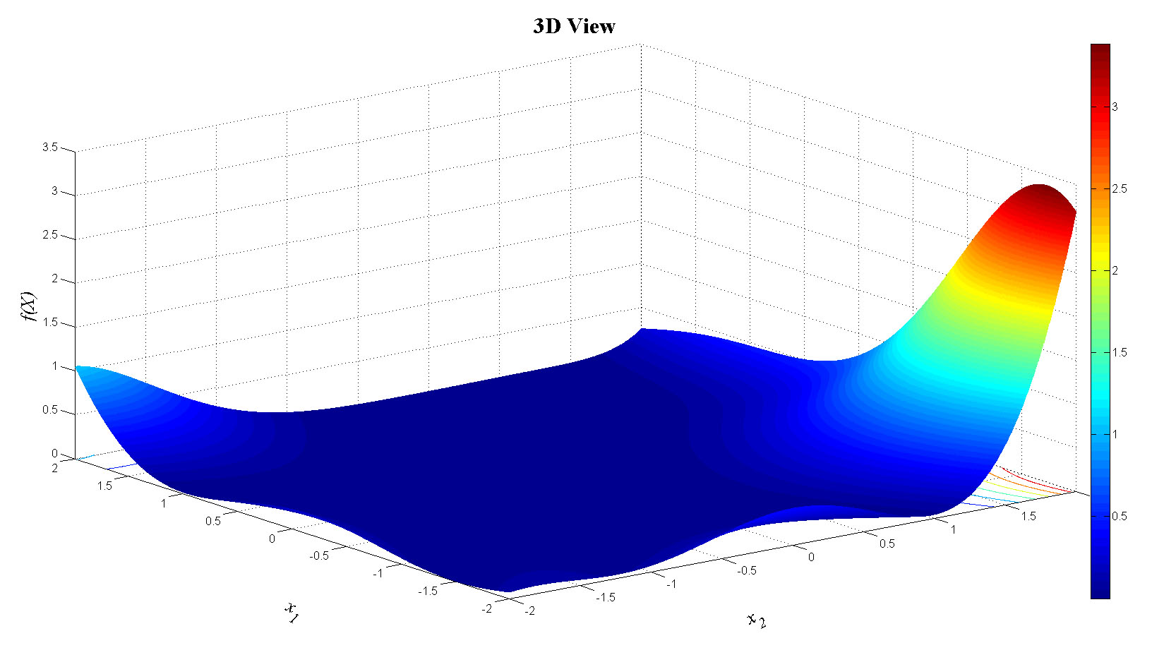 zlabel('f(X)','FontName','Times','FontSize',20,'FontAngle','italic');