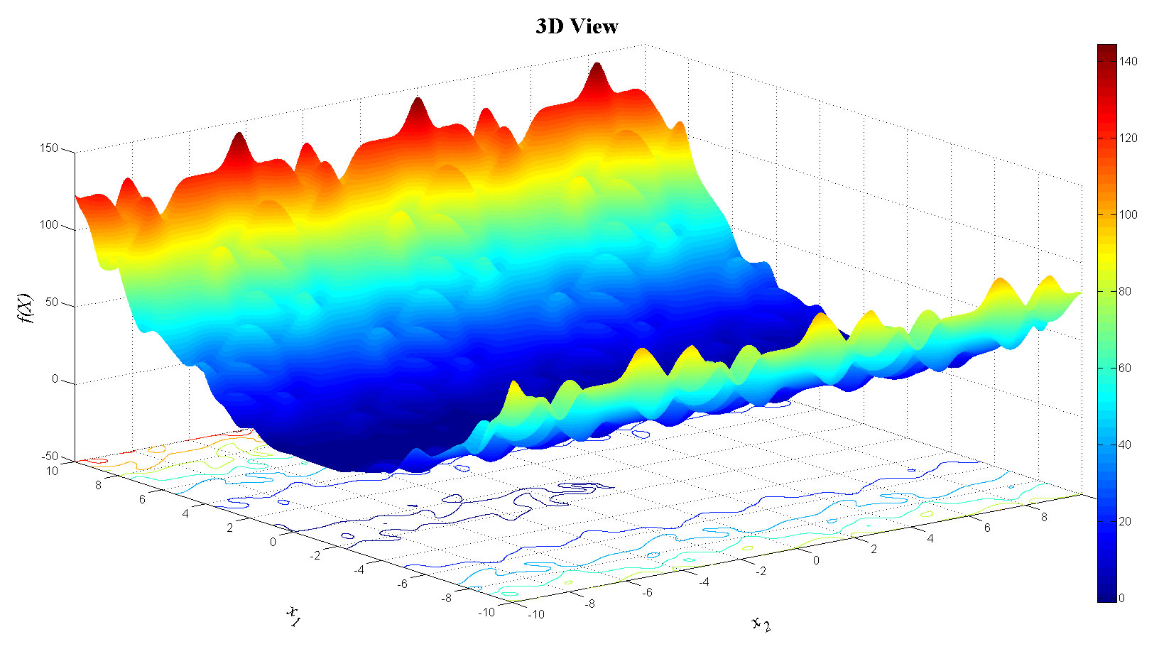 zlabel('f(X)','FontName','Times','FontSize',20,'FontAngle','italic');