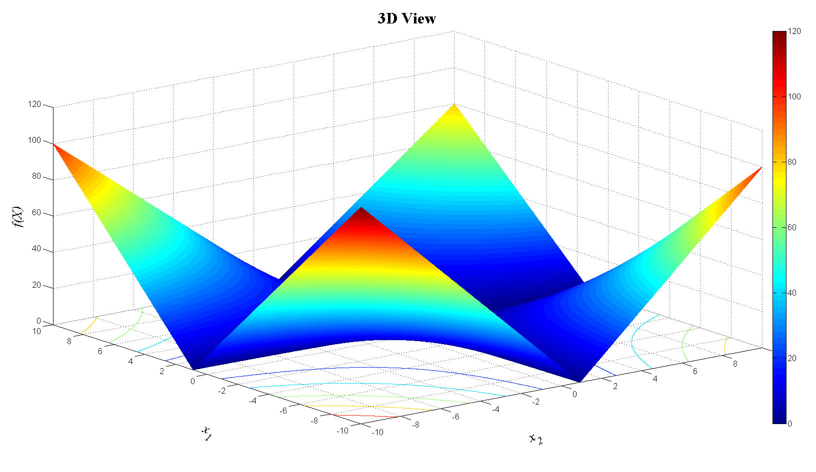 zlabel('f(X)','FontName','Times','FontSize',20,'FontAngle','italic');