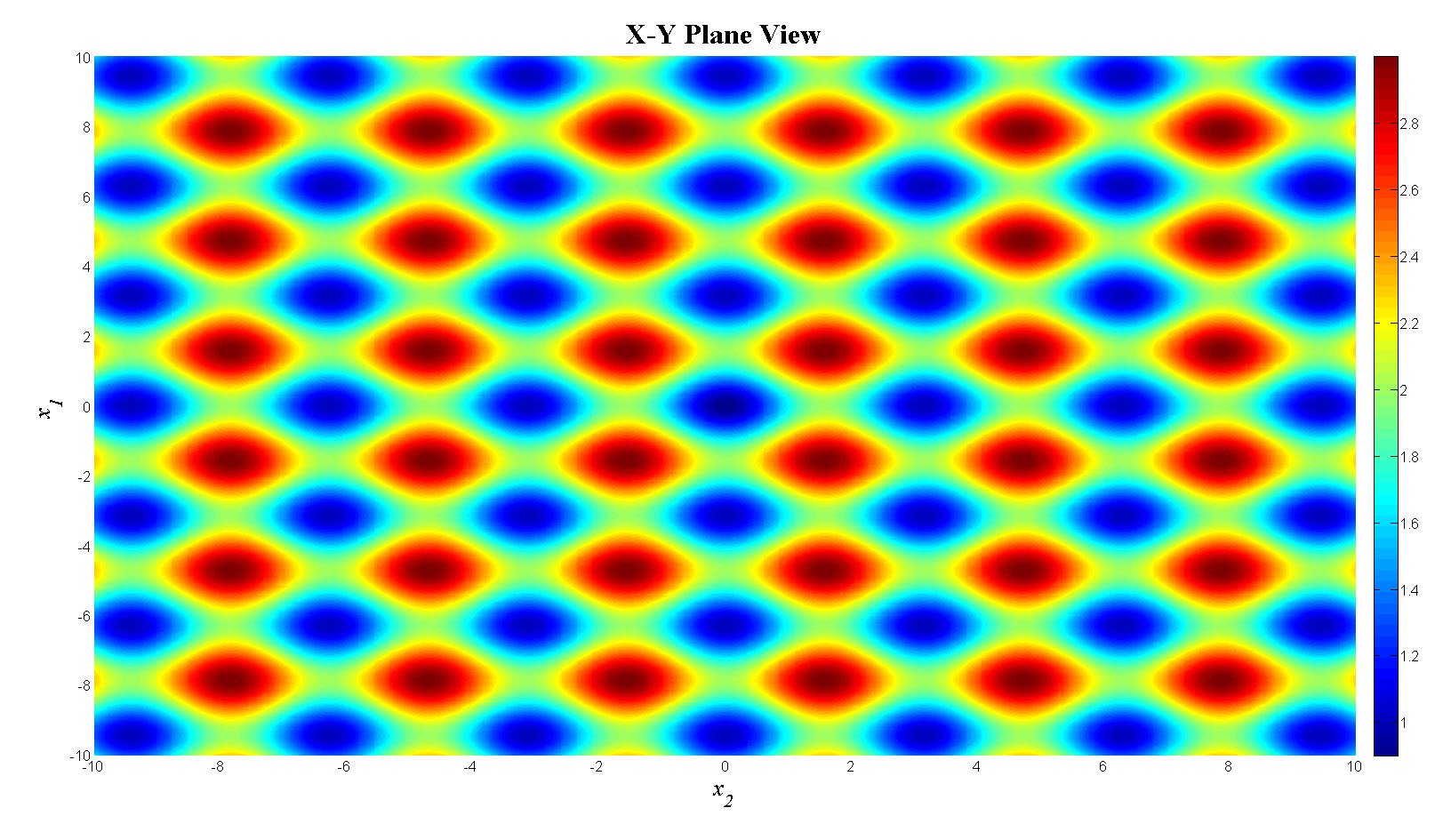 mesh(x1,x2,f_tot);view(0,90);colorbar;set(gca,'FontSize',12);