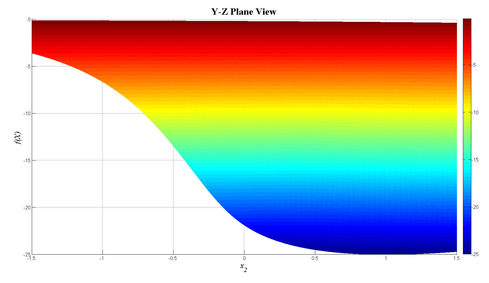 mesh(x1,x2,f_tot);view(0,0);colorbar;set(gca,'FontSize',12);