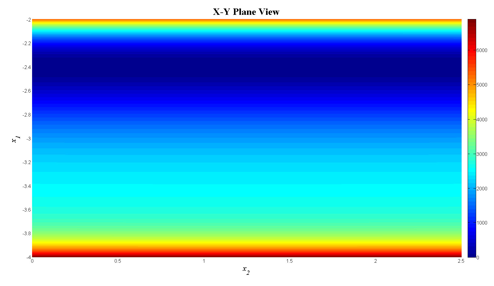mesh(x1,x2,f_tot);view(0,0);colorbar;set(gca,'FontSize',12);