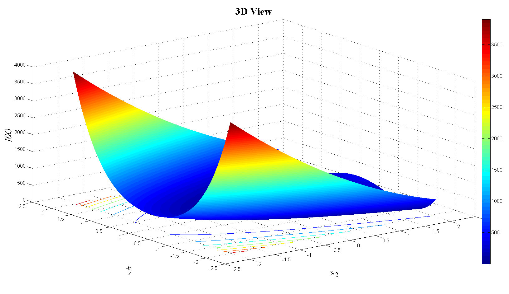 $$f(X)=\sum_{i=1}^{n-1}\left[100\left(x_{i+1}-x^2_i\right)^2+\left(x_i-1\right)^2\right]$$