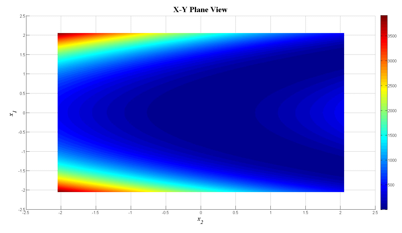 mesh(x1,x2,f_tot);view(90,0);colorbar;set(gca,'FontSize',12);
