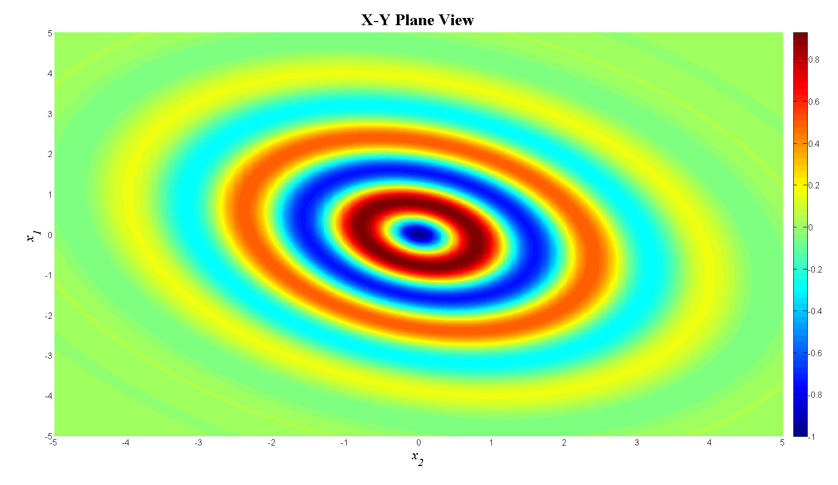 f(i)=-exp(-(x1(j)^2+x2(i)^2+0.5*x1(j)*x2(i))/8)*cos(4*sqrt(x1(j)^2+x2(i)^2+0.5*x1(j)*x2(i)));